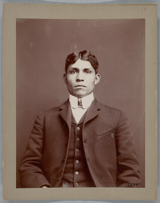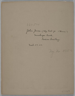 c. in ink: 224.574 \ John Jones (Edy-had-za = "Beaver.") \ Muskogee Creek, \ Indian Territory. \ Mch. 24, 04. \ [in graphite] Neg. No. 1135-6
