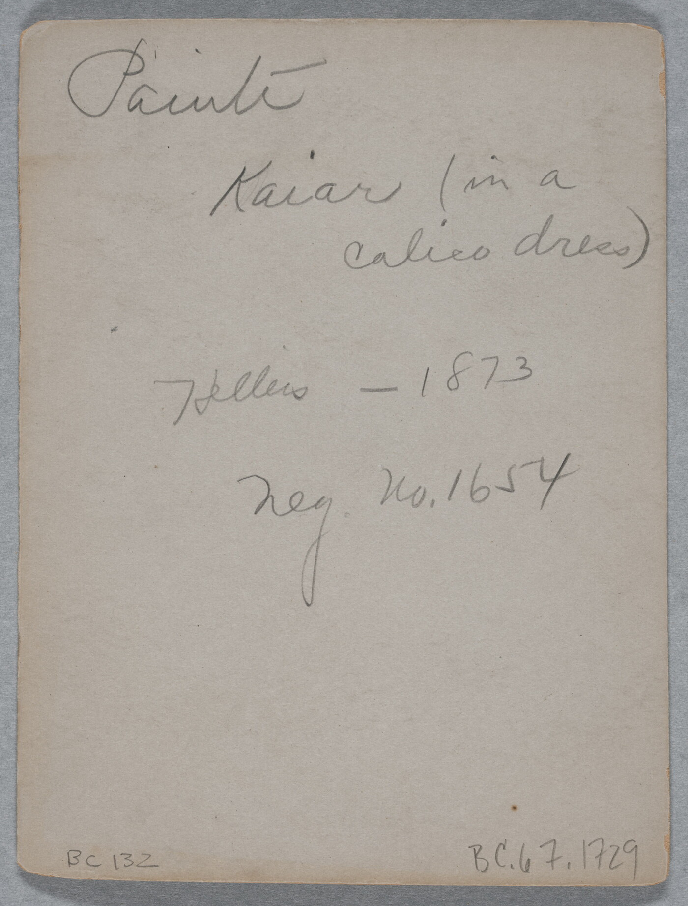 u.l. to c. in graphite: Paiute \ Kaiar (in a \ calico dress) \ Hellers - 1873 \ Neg. No. 165