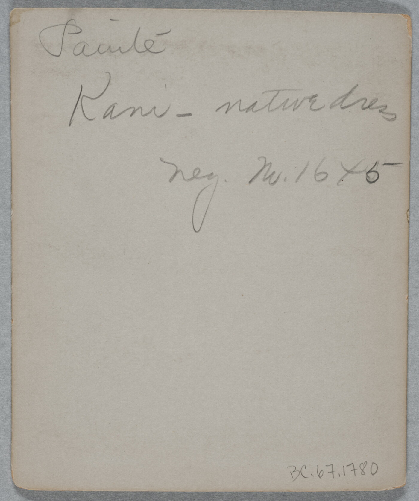 u.l. to c. in graphite: Paiute \ Kani- native dress \ Neg. No. 1645