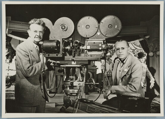 [Karl Struss and unknown cameraman with 3-D cinema cameras]