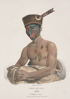 l.c.: Lehman & Duval Lith[rs]. \ KEE-ME-ONE \ or \ RAIN \ A Chippeway Chief. \ Painted at Fond du Lac 1827_ by J.O. Lewis.