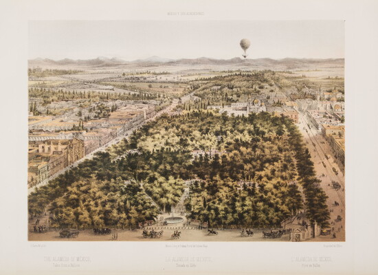 l.c.: México, Lithog. de Debray, Portal del Coliseo Viejo. \ LA ALAMEDA DE MEXICO, \ Tomada en Globo.