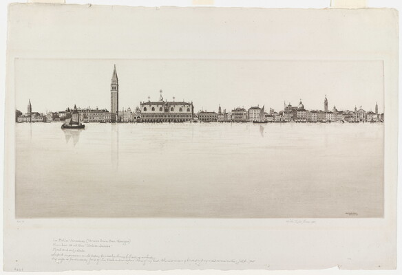 l.l. in graphite: Ed. 70 \ A 234 La Bella Venezia (Venice from San Giorgio) \ Number 18 of the "Italian Series" \ First and only state. \ Superb impression on old paper, printed by Henry E. Carling in London. \ My wife is particularly fond of this plate and considers it one of my best. She is at once my kindest and my most severe critic--J.T.A., 1935