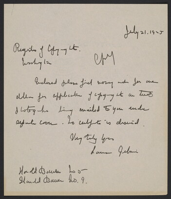 Laura Gilpin to Register of Copyrights. July 21, 1925.