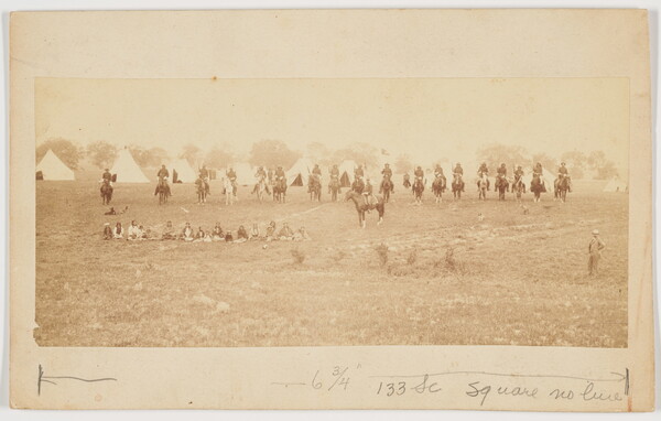 u.l. to u.r. in graphite: Lietu. Homer W. Wheeler (in advance) and Co. A. \ Cheyenne Indian Scouts, at Fort Elliott, Texas \ in 1889.