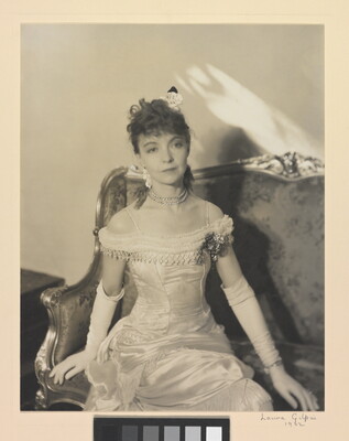 u.c. on paper label: [printed]: A : PHOTOGRAPH \ BY : LAURA : GILPIN \ TITLE [typed]: LILLIAN GISH AS CAMILLE. \ CENTRAL CITY COLO. \ [printed]: PRINT No. [typed]: 1. \ PICTURE NO. 17. \ [printed]: COLORADO : SPRINGS : COLORADO