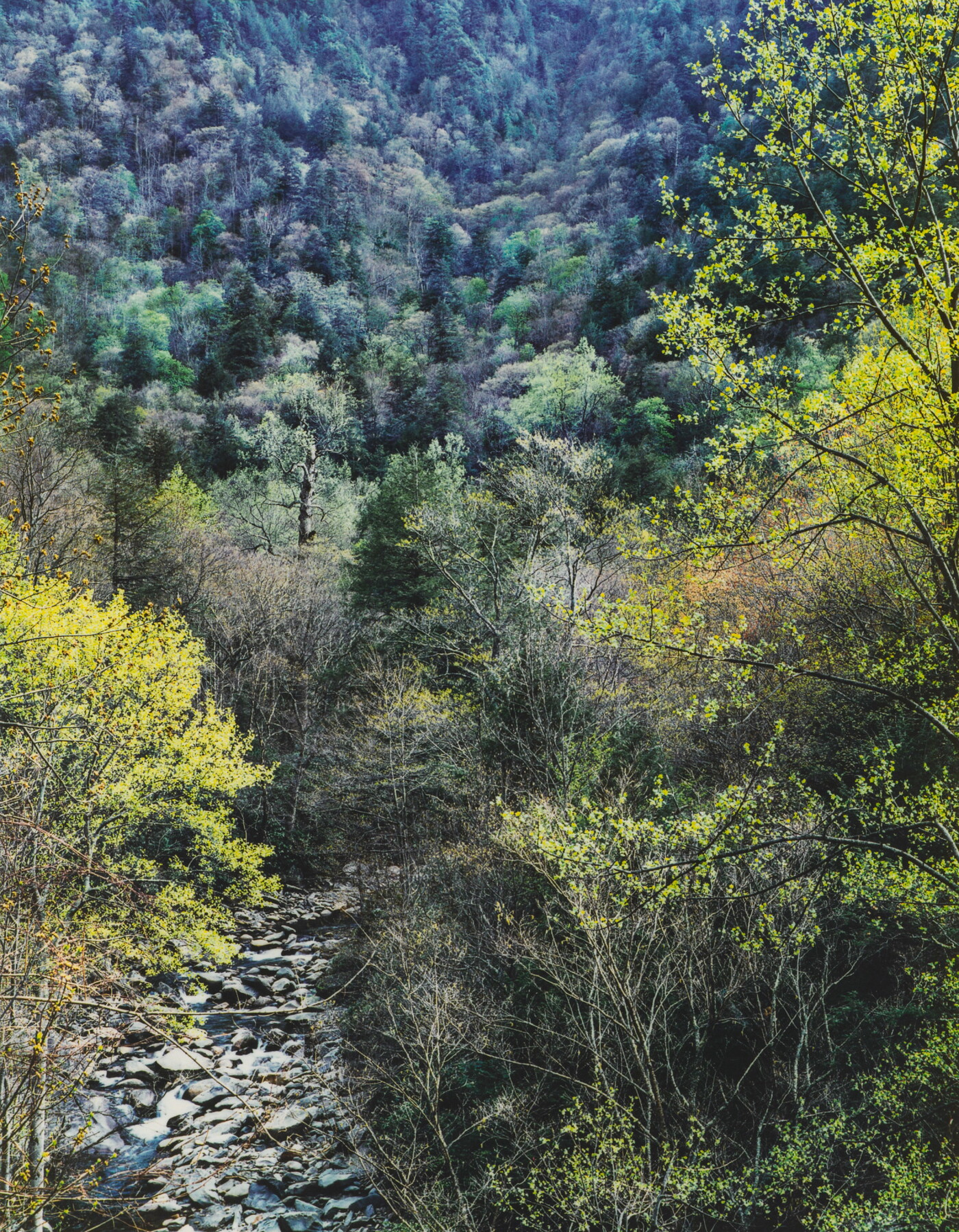 Little Pigeon River at Chimneys, Newfound Gap Road, Great Smoky Mountains National Park, Tennessee, April 22, 1968