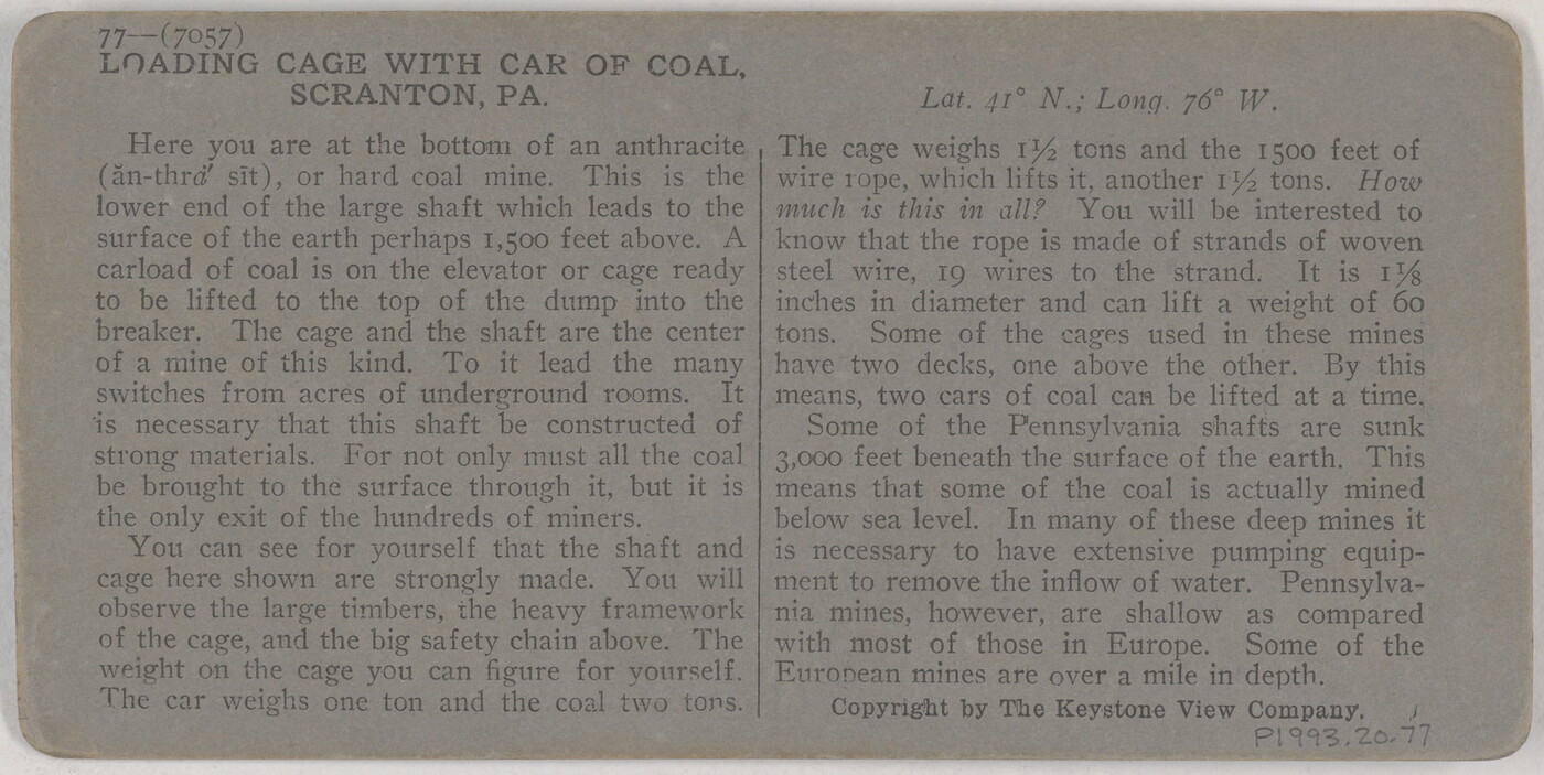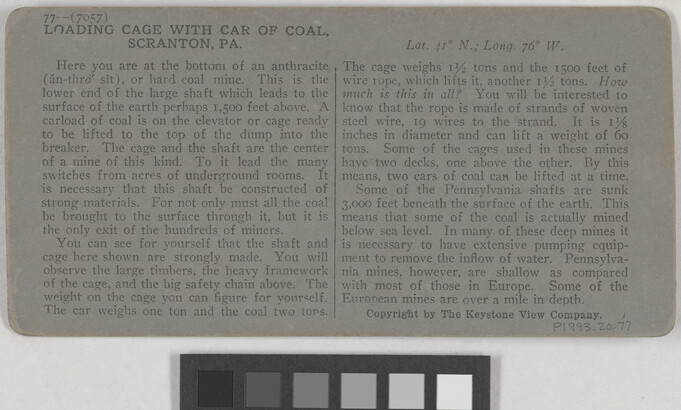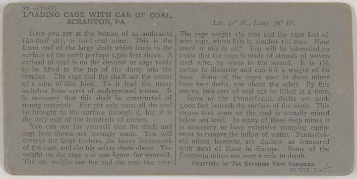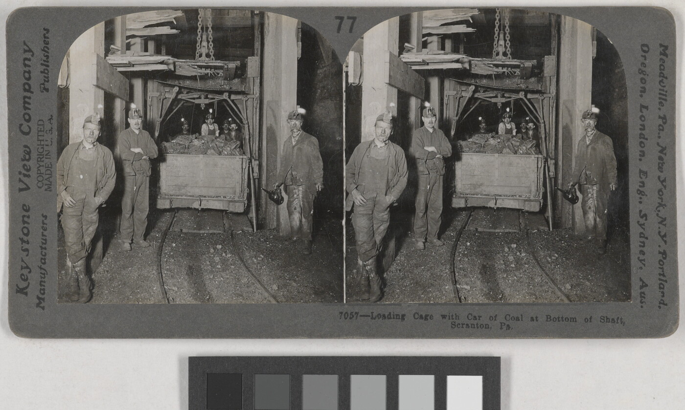 l.r. printed: Loading Cage with Car of Coal at Bottom of Shaft, \ Scranton, Pa.
