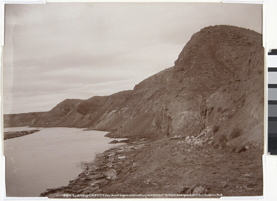 l.c. in negative: 584 - Lock Bluff, CMPS&P Exten, Mont, before Detonating 1300 Lb Blast of Black and Giant Powder. Huffman Photo.