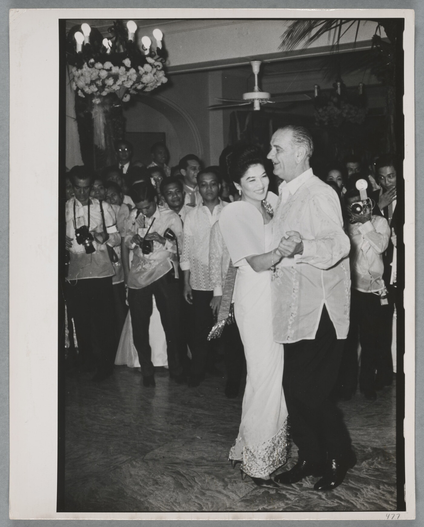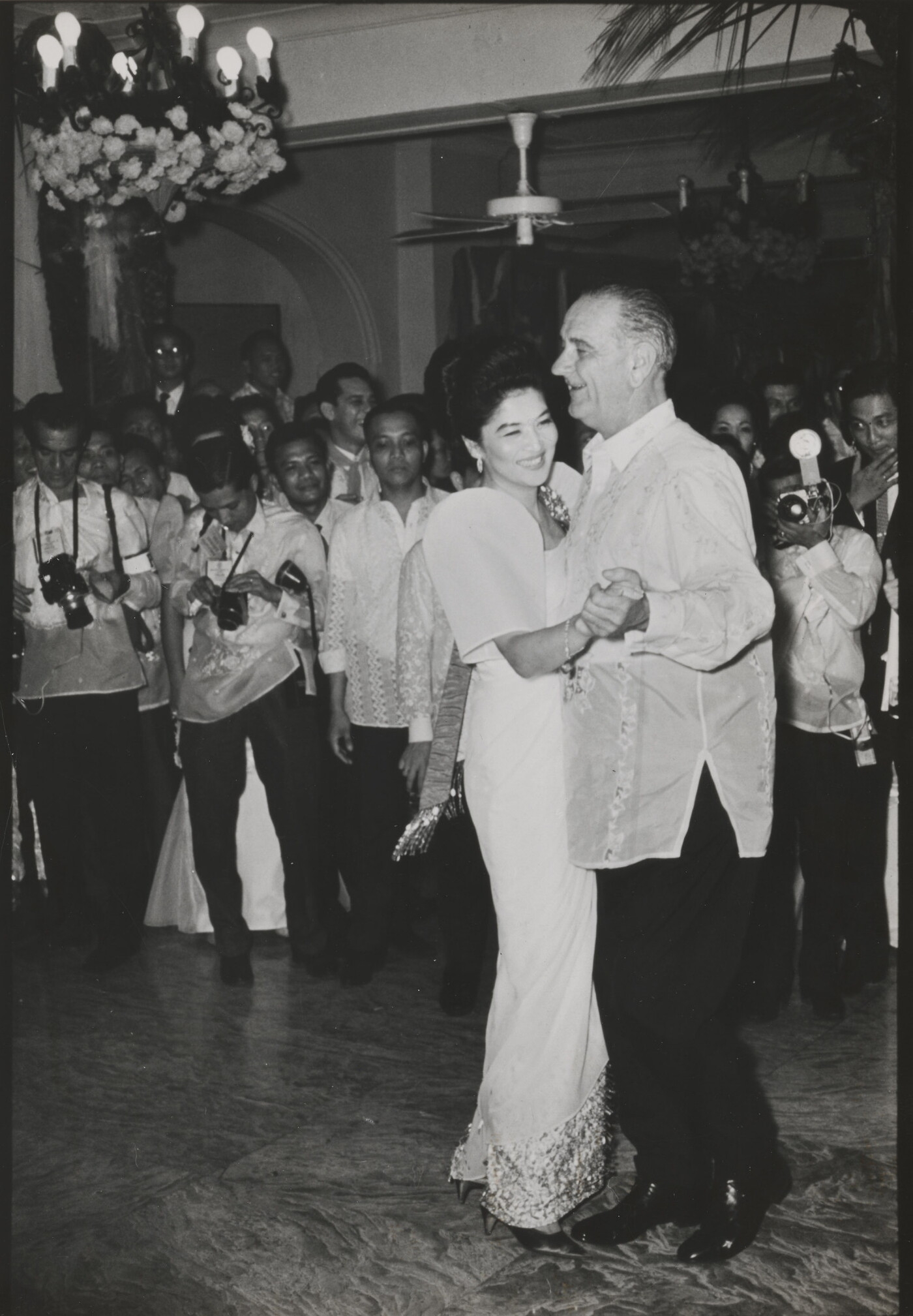 Lyndon B. Johnson dancing with Imelda Marcos (wife of President of the Philippines Ferdinand Marcos) during the 1966 SEATO (Southeast Asia Treaty Organization) conference in Manila, Philippines