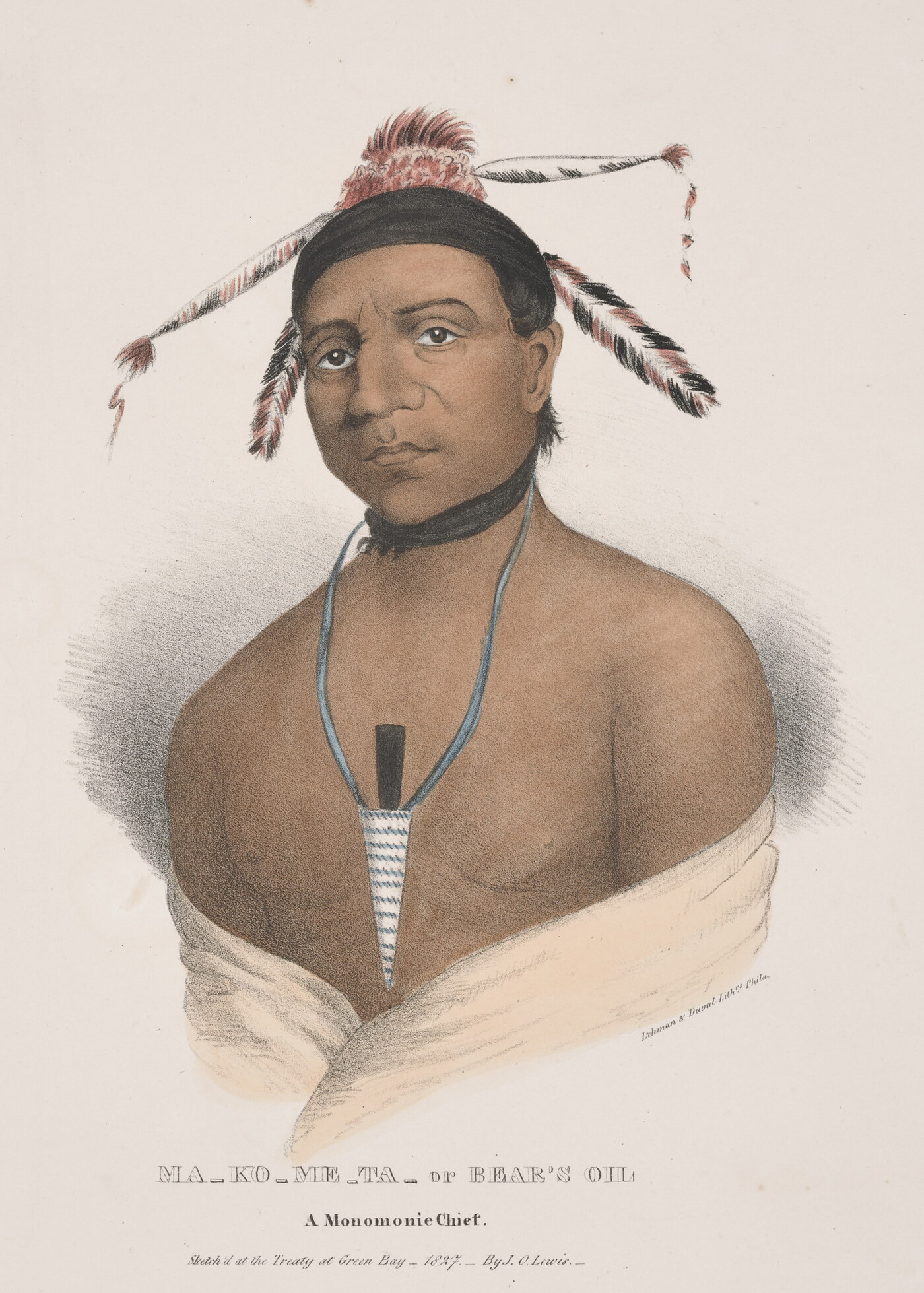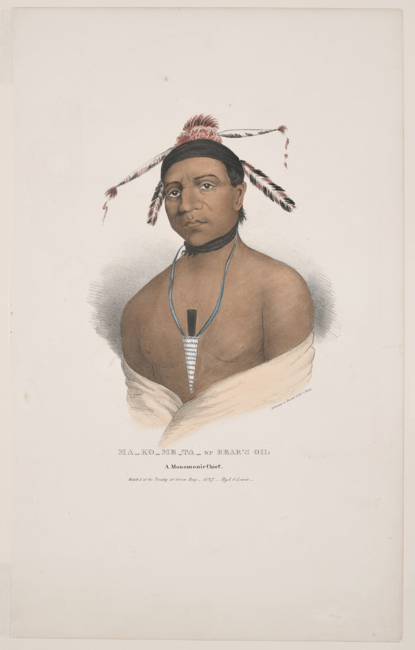 l.c.: MA-KO-ME-TA-or BEAR'S OIL \ A Monomonie Chief. \ Sketch'd at the Treaty at Green Bay_1827.__By J.O. Lewis.__