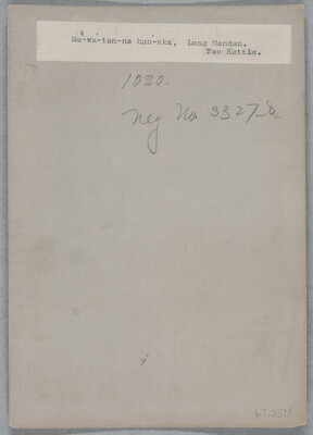 u.c. printed on paper label: Ma-wa-tan-na han-ska, Long Mandan. \ Two Kettle.