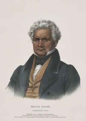 l.c.: MAJOR RIDGE. \ A CHEROKEE CHIEF. \ PUBLISHED BY E.C. BIDDLE, PHILADELPHIA. \ Drawn Printed & Coloured at J.T. Bowen's Establishment