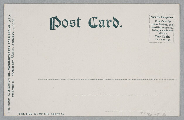 l.l. to u.l. printed along left edge: THE HUGH C. LEIGHTON CO., MANUFACTURERS, PORTLAND, ME., U.S.A. \ PRINTED IN FRANKFORT o\MAIN, GERMANY. No. 2856.