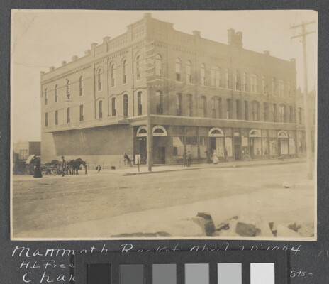 l.l. to l.r. in ink: Mammoth Racket. April 20: 1904 \ H.L. Freeman and Son owners. \ Chanute Kans. Cor. Grant Ave & Maine Sts -