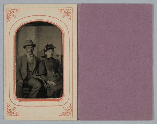 [Man and woman seated, both wearing hats, three-quarter length]