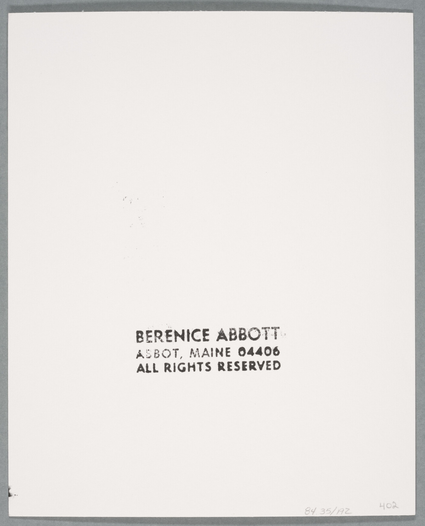 c. [stamp]: BERENICE ABBOTT \ ABBOT, MAINE 04406 \ ALL RIGHTS RESERVED