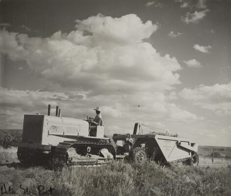 [Man operating tractor]