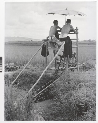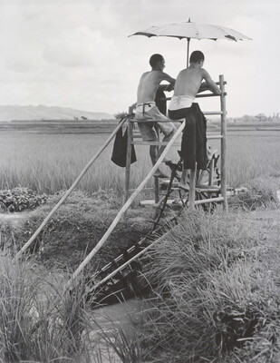 c. in ink: 8433 \ R 65 \ [signed] Carl Mydans \ Farmers raise paddywater \ to Higher Rice Field \ near Luan [crossed out] Lung Chuan-i Village \ 1941