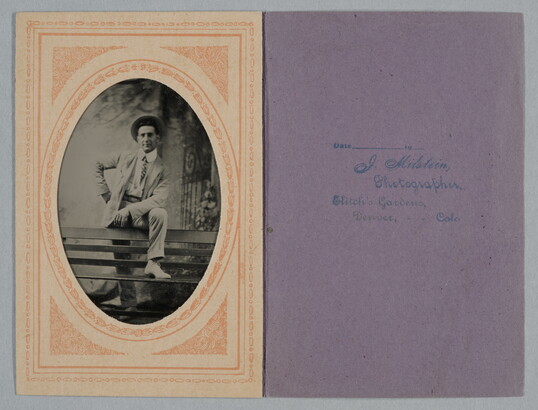 c.r. [on envelope flap] stamped in ink: Date ______ 19______ \ J. Milstein, \ Photographer, \ Elitch's Gardens, \ Denver, -- -- Colo