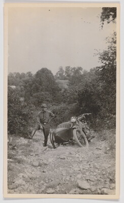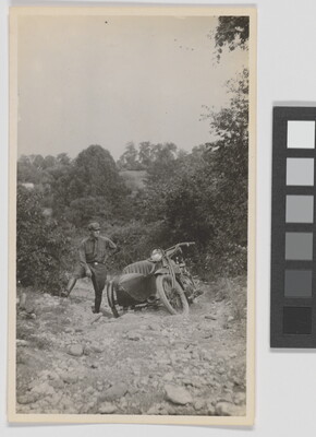 [Man standing next to motorcycle]