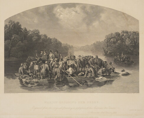 l.c.: MARION CROSSING THE PEDEE. \ Engraved from the original Painting in the [illeg.] of the American Art Union \ American Art Union 1851 \ Entered According to Act of Congress in the Year 1858 by the American Art-Union in the Clerks Office of the District Court of the Southern District of New York.