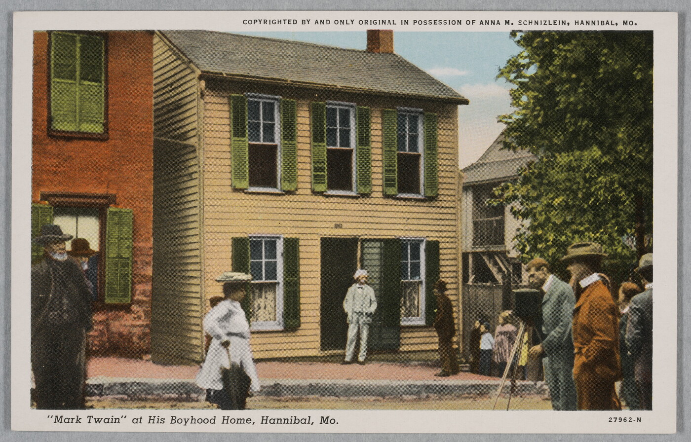 l.l. to l.c. printed in black, below image: "Mark Twain" at His Boyhood Home, Hannibal, MO.