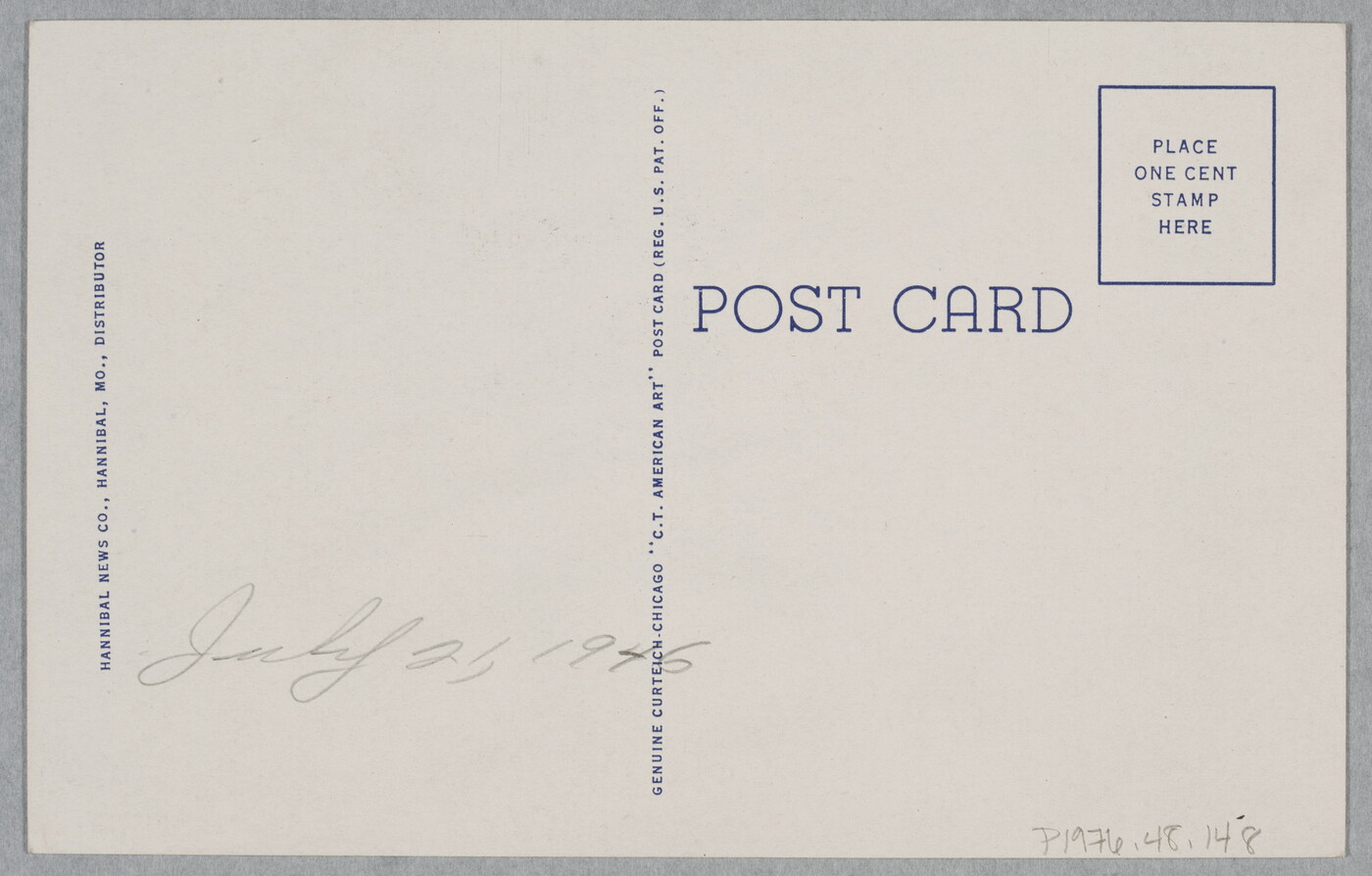 c.l. printed along left edge: HANNIBAL NEWS CO., HANNIBAL, MO., DISTRIBUTOR
