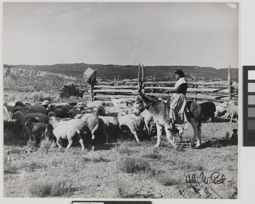 [Mary Mike herding sheep on burro]
