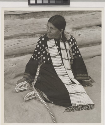 u.r. in graphite: Sioux \ Manderson, S.D. \ Mattie Last Horse \ Crafts woman & friend of \ Indian Arts & Crafts Board \ program. 1942