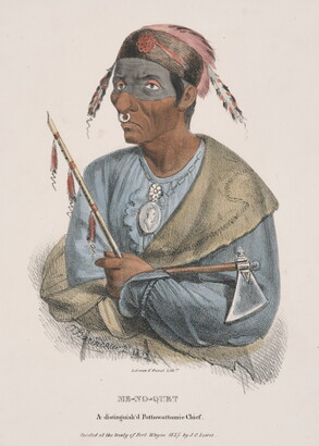 l.c.: Lehman & Duval Lith[rs]. \ ME-NO-QUET \ A distinguish'd Pottowattomie Chief. \ Painted at the treaty of Fort Wayne 1827. by J.O. Lewis.__