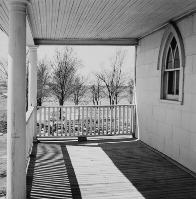 c. titled in black ink: Mennonite Brethren Church, Joes, Colo. A Looking to \ the side from the porch.