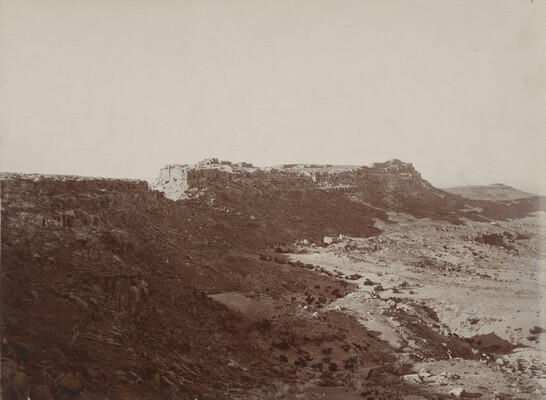 l.l. to l.r. in ink: "The Mesa and Three Moqui, Towns." (90 miles north of Holbrook.) \ Snake Dance took place at Walpi Town, Top of Mesa is 600 feet \ above Valley.