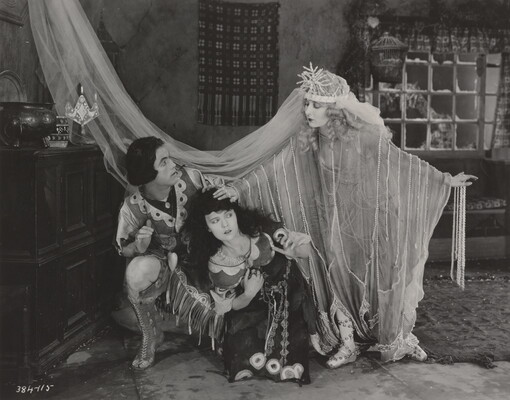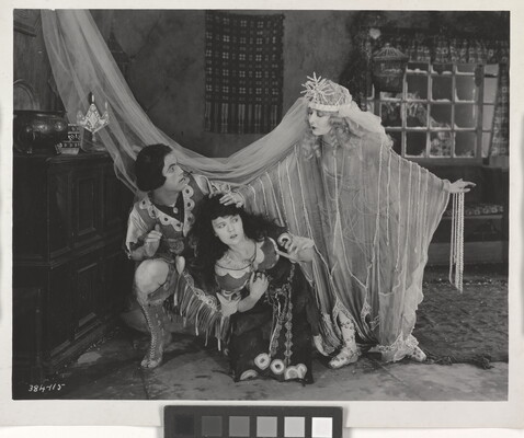 [Mildred Harris, Jacqueline Logan, and actor in play, "Fool's Paradise"]