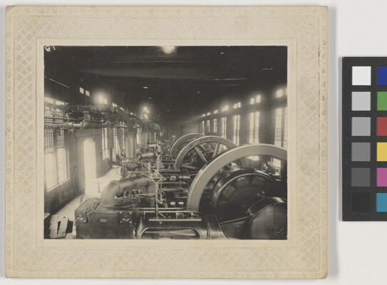 u.l. to l.r. in ink [text block]: Elec. Power Plant - Minnequa Plant \ C.P. & C. Co Pueblo - 1906 \ Power \ Corliss 3 - 500 K.W.D.C.230 Volt Generators \ Chuse 2 - 300 K.W.A.C.2300 Volt Alternators \ GE 1 - 300 K.W.A.C.D.C.M.G.2300V.230 Volt \ 1 - 350 KWA.C.2300 Volt Turbine. \ 1 - 100 C.F.M. compressor \ 3000 HP - B.&W. Boiler Plant \ 7 Firemen \ Ea Shift \ 1 Water Tender \ 1 Boiler Washer Days \ J.F. Dabney - Chef Eng. \ Pop Patterson Day Eng. 1-Wiper \ Lee \ 1-Oiler \ Walter Twombly - Night Eng. 1-Oiler, Lee \ C.R. Garland Night Electrician