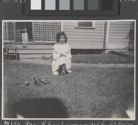 l.l. to l.r. in ink: Miss Fay Rhoadarmer and her pet Goslins [sic] \ Milan Ills. June 28th 1904