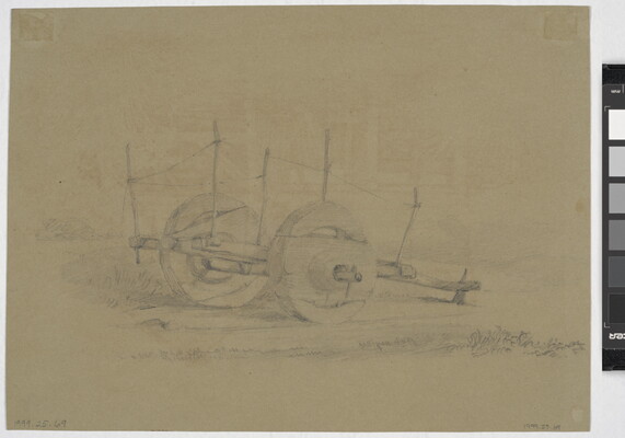 [Graphite drawing of a wagon]