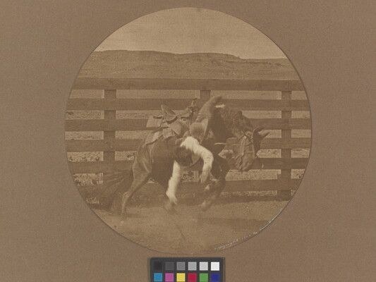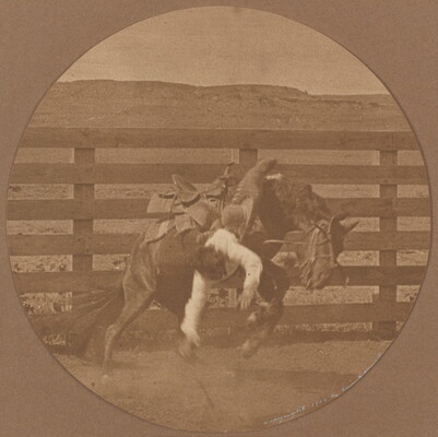 Monclavio Lucero, a Mexican Bronc Buster, Being Thrown by a Bronc in the LS corral, LS Ranch, Texas