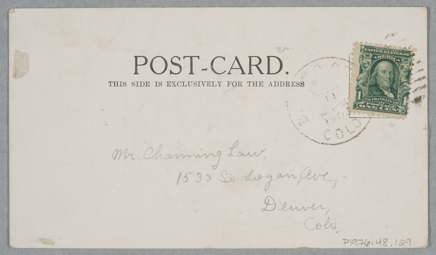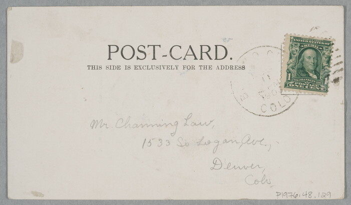 c.r. to l.r. in graphite: Mr. Charming Law, \ 1533 So Logan Ave., \ Denver, \ Colo.