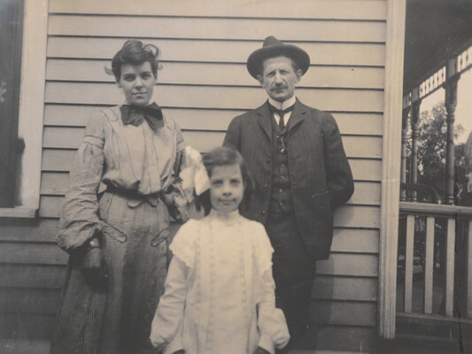 Mr. and Mrs. E.L. Rhoadarmer and Daughter Fay at Home Milan, Illinois, June 28th 1904.