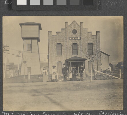 l.l. to l.r. in ink: Mt. Whitney Power Co. Lindsey California \ Furnishing Electric power to pump water \ from Deep Wells for Irrigation Purposes.