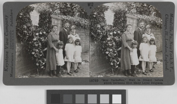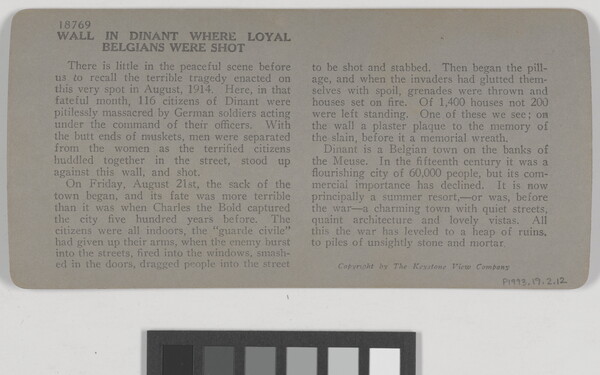 l.r. printed: 18769 "Mur Tschoffen," Wall in Dinant before \ which Germans Shot Many Loyal Beigans.