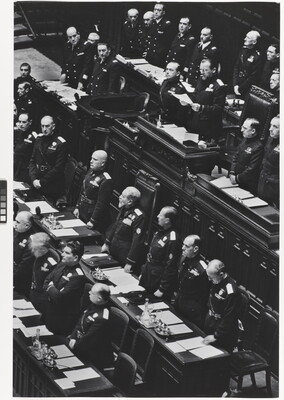 Mussolini Dominates His Parliament as Italy Prepares to Enter the War against the Allies. 1940