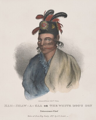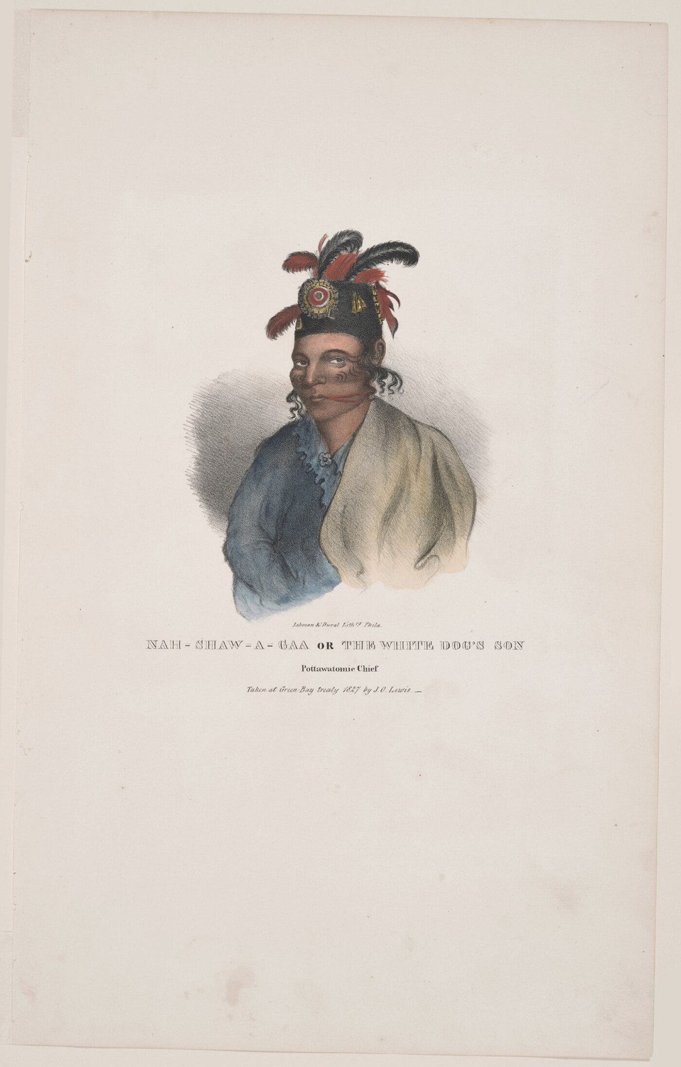 l.c.: Lehman & Duval Lith[rs]. Phila. \ NAH-SHAW-A-GAA OR THE WHITE DOG'S SON \ Pottawatomie Chief \ Taken at Green Bay treaty by J.O. Lewis.__