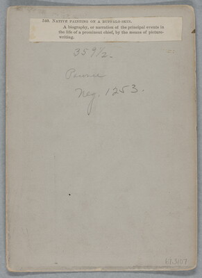 u.c. printed on paper label: 540. NATIVE PAINTING ON A BUFFALO SKIN. \ A biography, or narration of the principal events in \ the life of a prominent chief, by the means of picture- \ writing