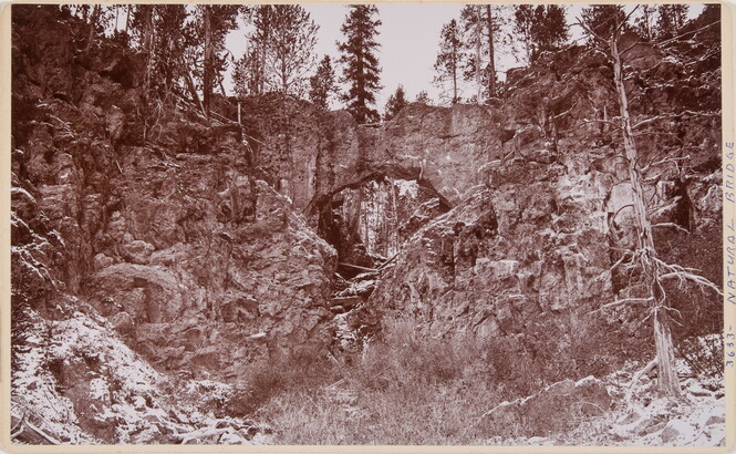 l.l. to l.r. printed: 3633-Natural Bridge. \ F JAY/HAYNES, \ OFFICIAL PHOTOGRAPHER N. P. R. R. \ SELBY AVE., COR. VIRGINIA, ST. PAUL, MINN. \ SEND FOR \ CATALOGUE OF \ VIEWS. \ NORTHERN PACIFIC, \ YELLOWSTONE PARK, \ PACIFIC COAST AND ALASKA.