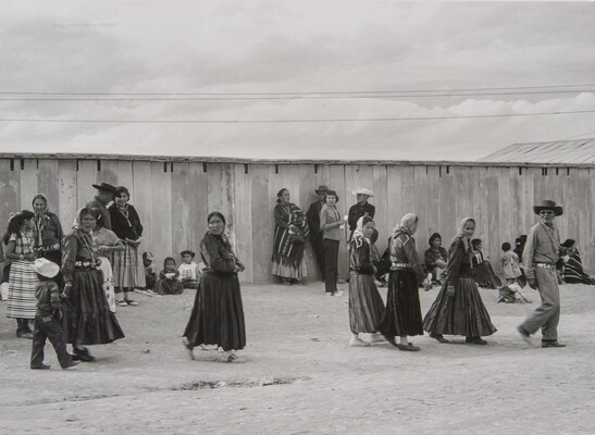 u.c. on paper label: [printed]: A PHOTOGRAPH BY \ LAURA GILPIN \ SANTA FE, NEW MEXICO \ [typed]: NAVAHO PEOPLE AT THE \ SHIPROCK FAIR. \ 1959 \ from \ THE ENDURING NAVAHO \ UNIVERSITY OF TEXAS PRESS. PUB.