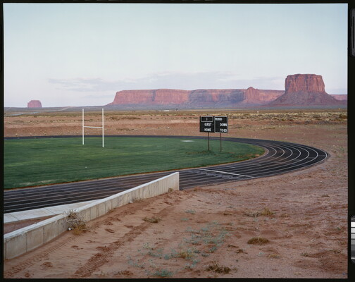 Does the title of this photograph, Navajo Monument Valley Tribal School Near Goulding, Utah, impact how you see the image? In what ways?