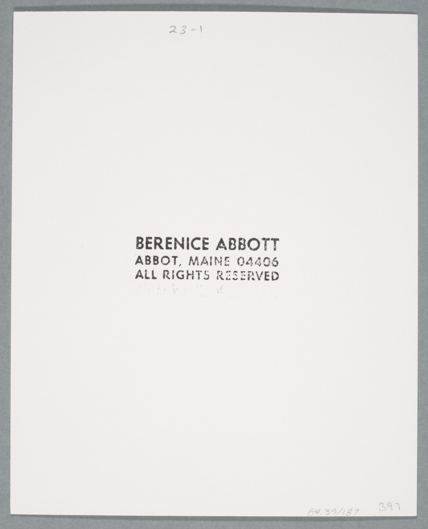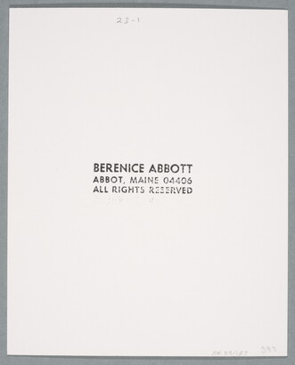 c. [stamp]: BERENICE ABBOTT \ ABBOT, MAINE 04406 \ ALL RIGHTS RESERVED