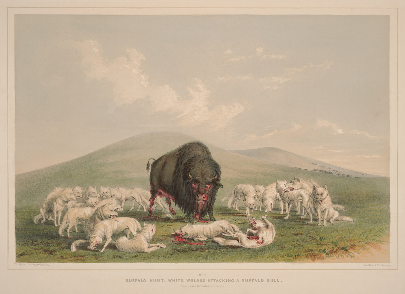l.c.: N[o]. 10. \ BUFFALO HUNT, WHITE WOLVES ATTACKING A BUFFALO